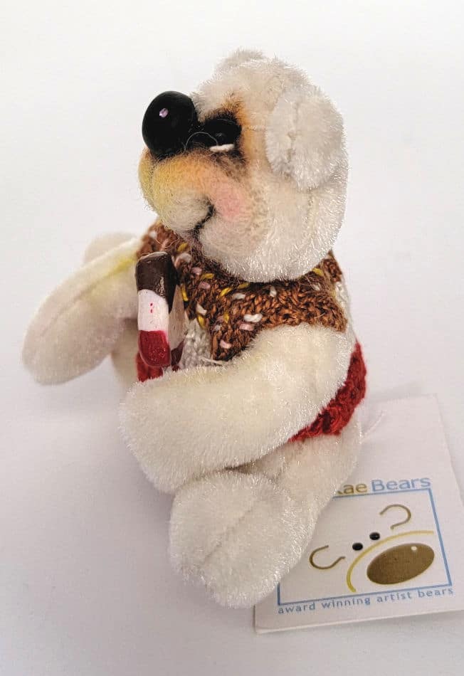 This bear is designed and handcrafted by the artist, Katherine Hallam of Katie Rae Bears. Katherine has won numerous awards for her bears, including Toby Awards. In 2014 she was voted Teddy Bear Artist of the Year.