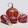 The bright MERLOT pumpkins have a rich red-with-hints-of-purple body with a semi-translucent glow. Delicate gold ribs add texture and enhance the elegant look of these pumpkins and the curling gold stems evoke the twining tendrils of a living vine. Whether your space calls for a large centerpiece or a small artistic accent, these pumpkins make a beautiful display. Individual pieces are striking on their own, or group them together for greater impact.