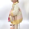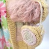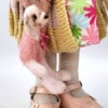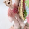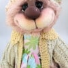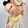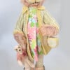 Sally Katie Rae Bear is 18″ tall mohair bear and handmade by Toby Award Winning bear artist Katherine Hallam. She is dressed in a hand made cotton flower printed dress, hand knitted coat and hat with knitted flowers, striped stockings and French designer leather baby shoes. She is holding a 6 inch vintage style Katies Attic Collection pink bear with hand knitted mohair jacket and felt flower, she has a little knitted bag with a surprise inside! Her brown nose is accented with a pink rhinestone, the mark of a Katie Rae Bear. Each bear arrives with a signed and dated tag of authenticity.