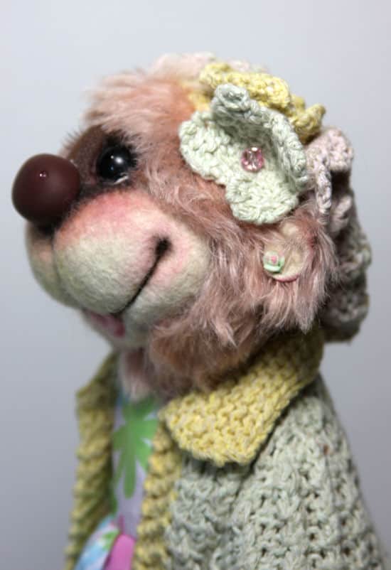 Katherine’s bears are made using traditional bear making techniques along with new ideas including needle felting, needle/scissor sculpting, Fimo sculpting and hand painting, so no two are ever the same. The faces don’t come from a patterns they are born in her hands. She knows when its time to stop when the face talks to her! All of her bears noses are hand made by Katherine and all have her signature diamante stone.