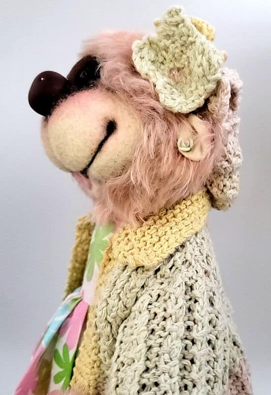 Katherine Hallam was a bear collector at first. When she discovered miniature bears in the late 80’s she decided to trying making them herself. She bought a kit but that did not inspire her so I threw away the pattern and started designing her own bears. She has done arts and crafts, but making bears gave her a special “fuzzy” feeling . The creative process is the most important thing! She is self taught and a lot of her bear making skills have been learned through trial and error. Always looking for new ideas and techniques, she has transformed her bears, always looking for new ideas and techniques.